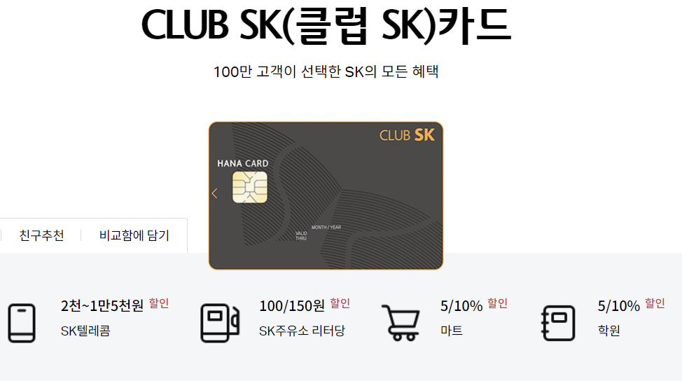 오늘은 하나카드 CLUB SK 카드에 대해 알아보고자 합니다.