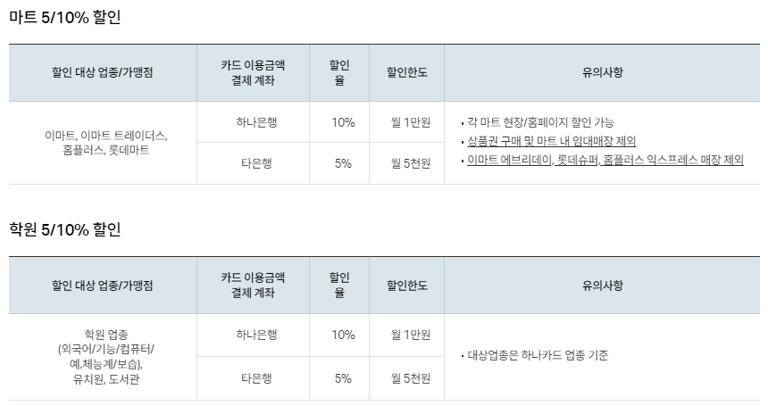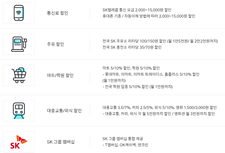 하나카드 클럽SK 카드는 종합적으로 할인이 다양한 카드입니다.